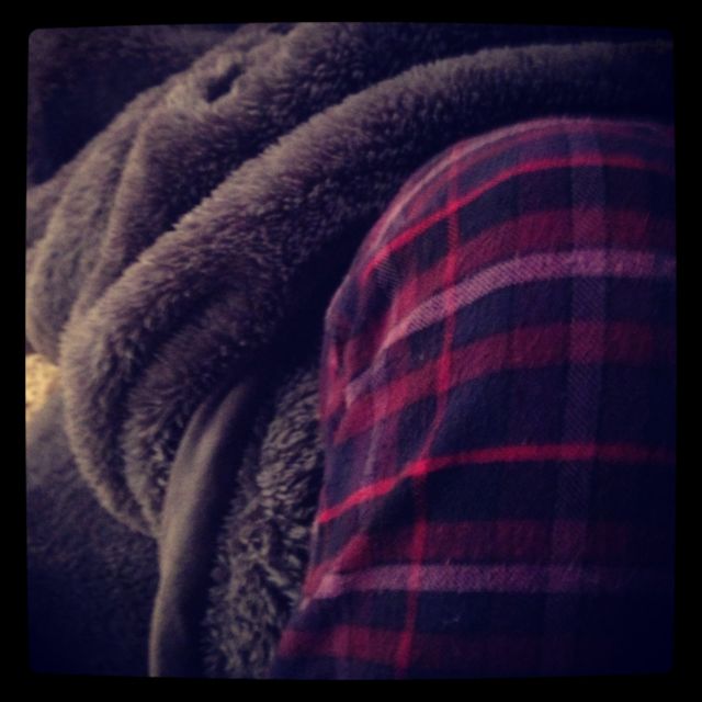 Little niece in a polka dot robe, another holding her polka dot blankie, sleepy just waking.