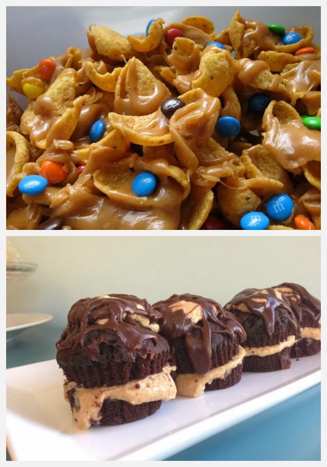 Well, the sweet one speaks for itself.  It is very sweet with just a touch of salty, crunchy with chocolate and peanuts, all covered in white almond bark.  It makes a ton and both kids and adults love it.