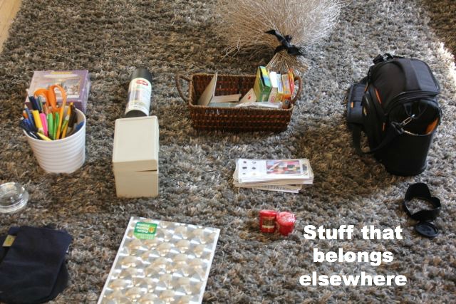 Under her bed? 90% of it was trash. Easy to clean up. I also grabbed a bed frame that was in our garage that sits quite high so sweeping under her bed is now a breeze. It is high enough to see under from the door so I will know if things start getting stuffed under there. {smile}