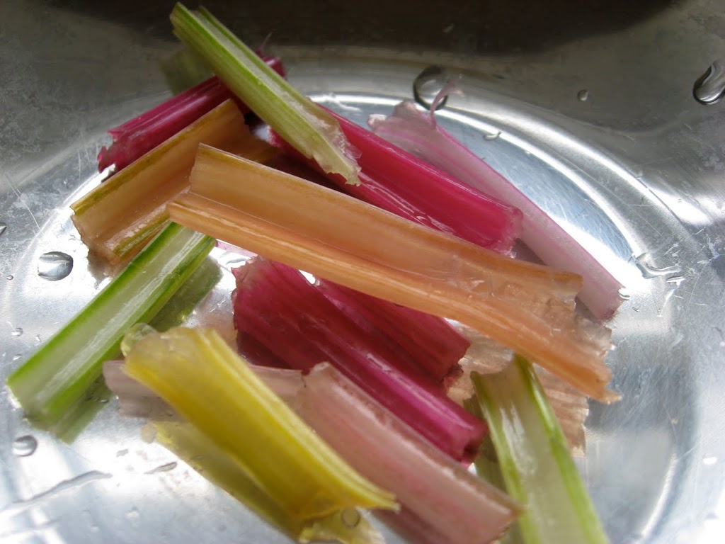 Swiss chard ribs with cream and pasta). Roughly chop the leaves into inch-wide strips.