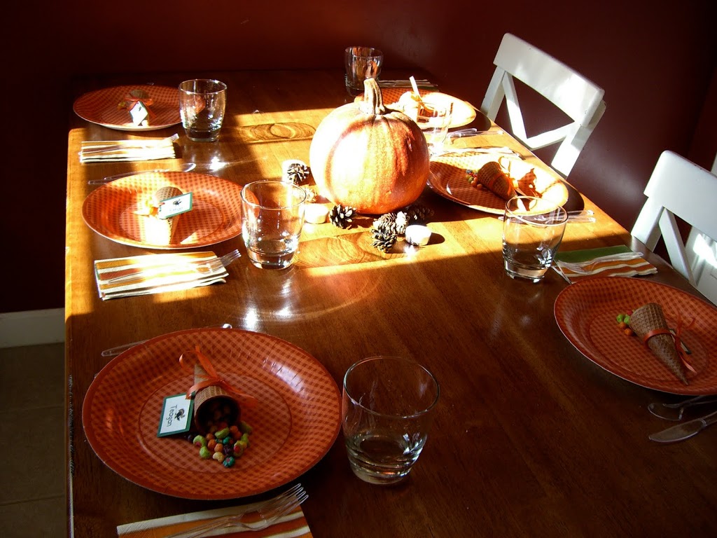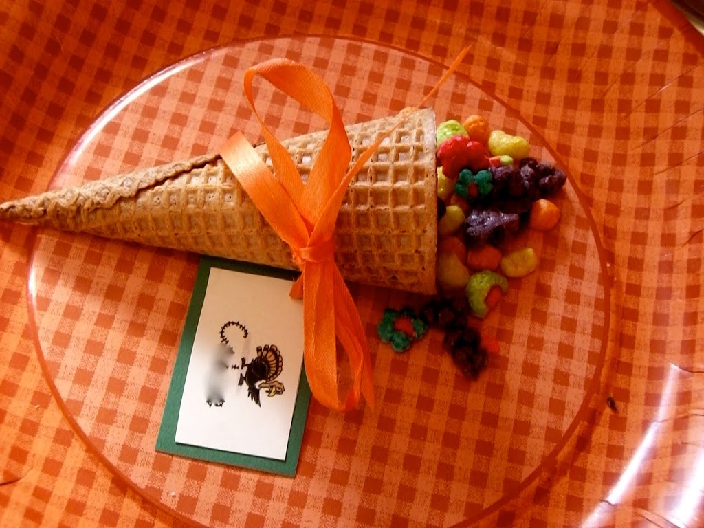 The kid table is always fun. I love to get on Familyfun.com and get new ideas. I used these cute ice cream cone cornucopias a couple years back.