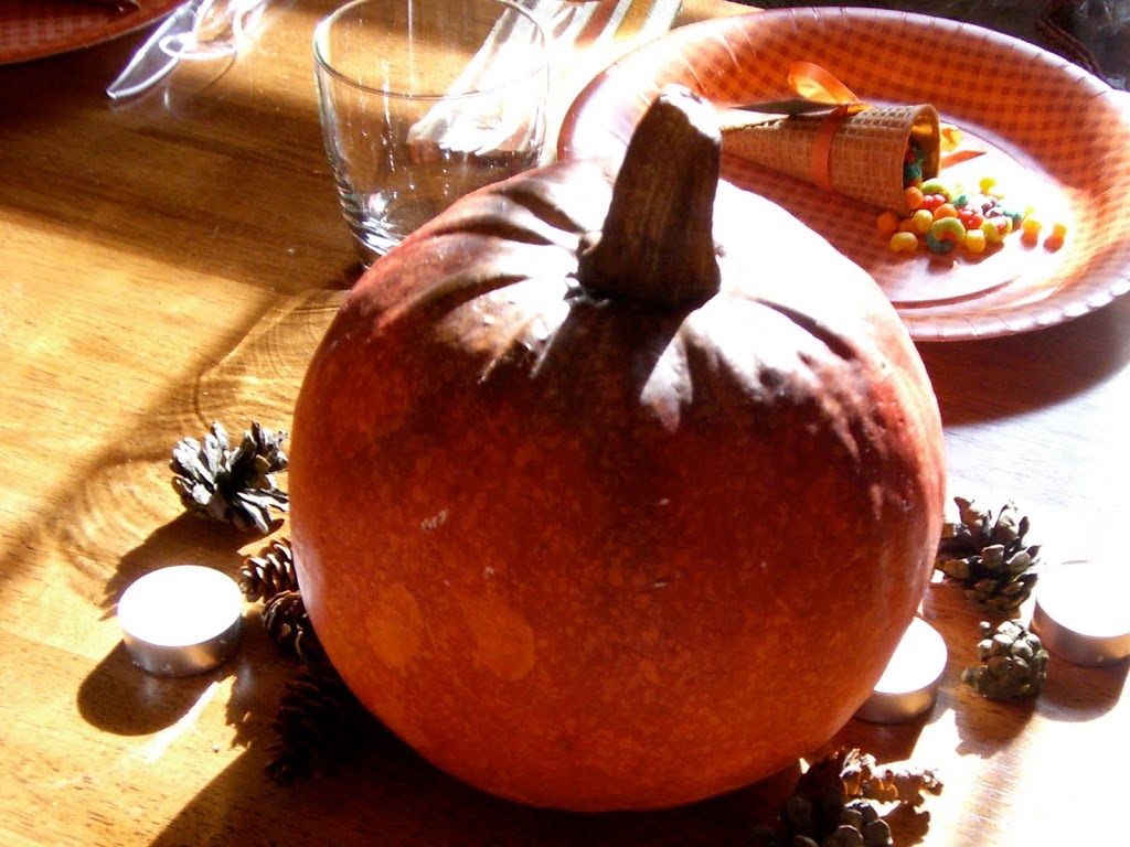 (remember this post?). For my table decor, I am simply going to grab from what I have. Maybe these brown paper pumpkins from my sunroom windowsill, a few fake leaves sprinkled about and some candles. My plates have an earthy, organic feel, so these would keep with that theme.