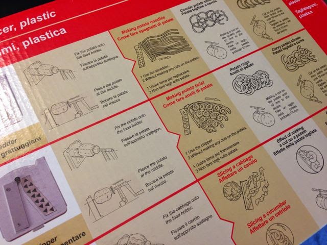 The back of the box shows you the many ways you can use the spiralizer.  It is really easy to use and super easy to clean.