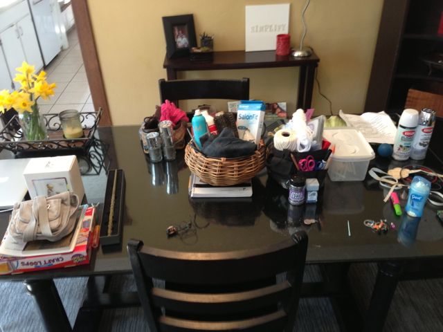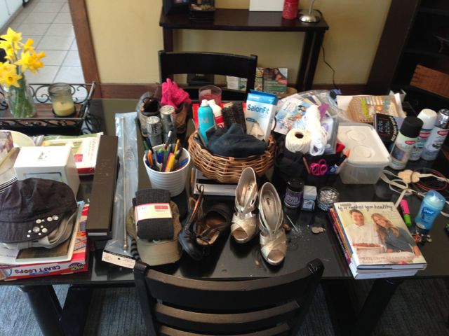 The put-away pile and give away pile were just little. The put away was potting soil, yard tools, snow boots, and snow shovel. Almost all of these things belong in the garage. Just 3 little things for my giveaway pile. Oh well. Better than nothing, huh?