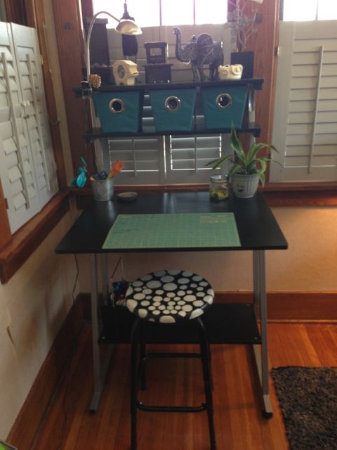 Ok, enough before pics. Here is what I did with her desk. I moved it over to a different wall, away from her beauty area. She now uses it for her duct tape business, creating & studying. Do you love how she made a smiley face on her plant pot? That made me smile.