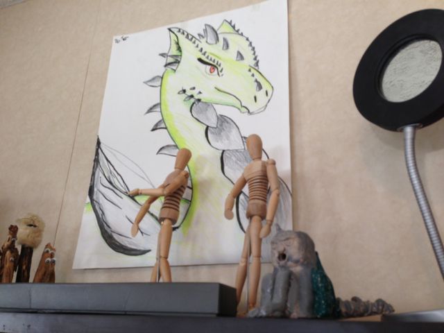The little wooden sticks in the bottom left corner with goggly eyes belonged to her Great Grandpa. I love how special they are to her…she is the perfect person to cherish such a fun and quirky object. She made the gargoyle in clay class, and drew the dragon a couple years ago. In that box is her wand from Harry Potter World. All things that matter to her.