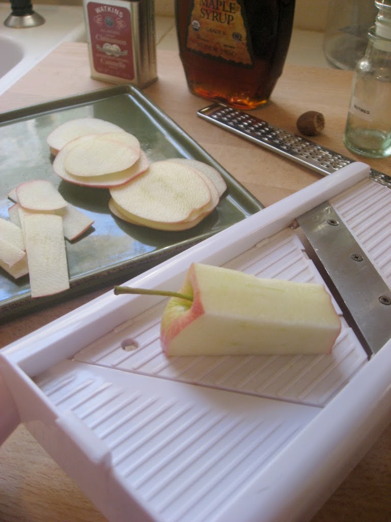 Bring water, milk, cinnamon, salt, nutmeg & cranberries to a boil. Add oats. Stir and reduce heat. Simmer for 5 minutes. Remove from heat and add thinly sliced apples. I use a mandolin, then do a rough chop. This makes them small enough for the hot oats to soften them just enough. Drizzle with maple syrup or sprinkle with brown sugar.