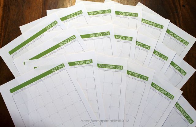 - January-December 2014 Calendar (vertical, binder style) – 12 pages (green)