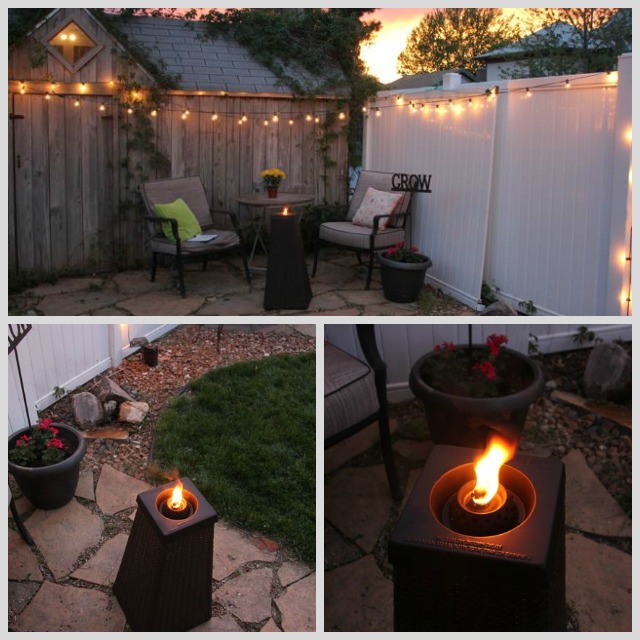 Torches–We have one table top torch that found at a garage sale, and my favorite torch sculpture that I wrote about here. I love them both. I keep oil on hand, but they really only need filled once a year. We light them any evening we are out there. Tiki makes a citronella oil that works really well to keep the mosquitos away, and the element of fire always bring coziness. I love that I don’t have to make a pit fire every night to have the element of fire. I have had to replace the wicks about once a year, but they are so inexpensive (less than $2!) and can be found at any hardware store or garden center. I stocked up and always have them on hand.