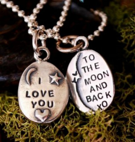 Another best seller and a BIG HIT with my “mommy friends” is a darling little pendant I designed that I call “To the Moon and Back”. I can’t begin to count how many moms and grandmas I’ve heard from who tell me that this is exactly what they tell their little ones every night before they tuck them into bed … “I Love you to the Moon and Back”!
