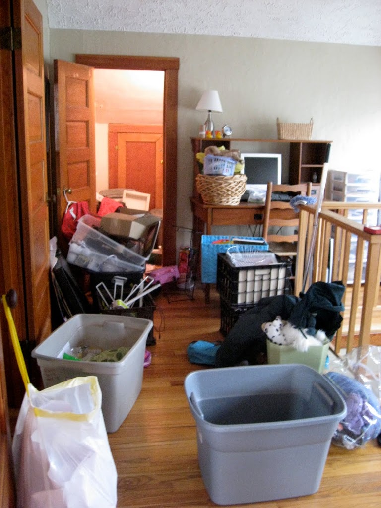 I sorted things into 3 bins–“give away” “put away” “donate”