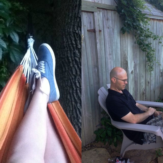 It gives our family one more thing to do while we are hanging out in the yard. While Avery and I were busy making silly shadows, Dad relaxed with a book, sister Colsie took over the hammock, and Teagan shot some hoops. Being purposeful with creating an outdoor space is working and it makes my heart so happy to see the family out there enjoying it!
