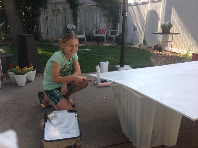 ~We dusted the plywood then applied a coat of Kilz to the front, back and edges.