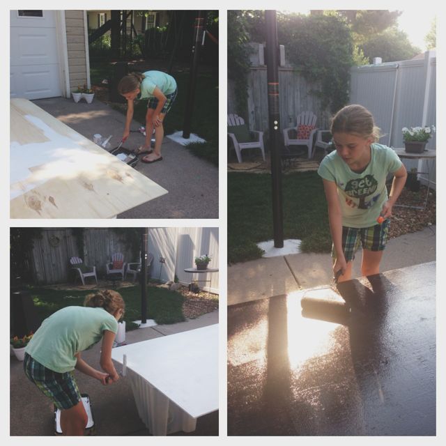 This project cost us about $40.00. It helped that I already had chalkboard paint left over from this indoor chalkboard project. All I had to purchase was the plywood and primer.