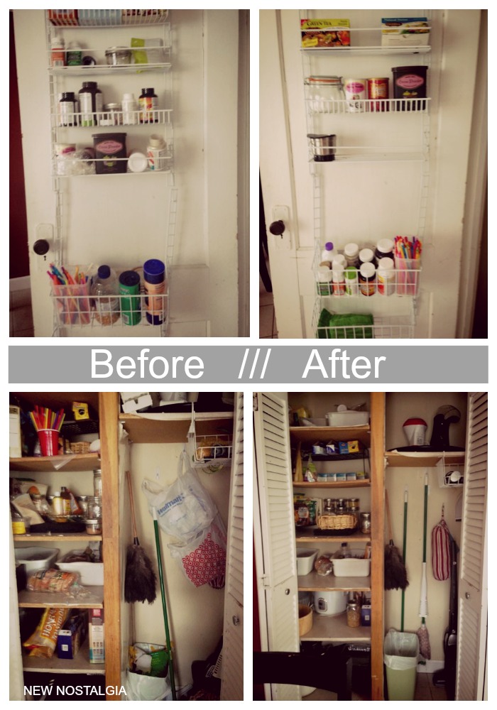 Go through the items, start putting ‘like’ items together, then toss, toss, toss! Say goodbye to old, expired items. Don’t be afraid to get rid of items you won’t use, even if they are not expired. Donate them if you don’t want to throw them out. Use a critical eye and don’t keep anything you won’t use.