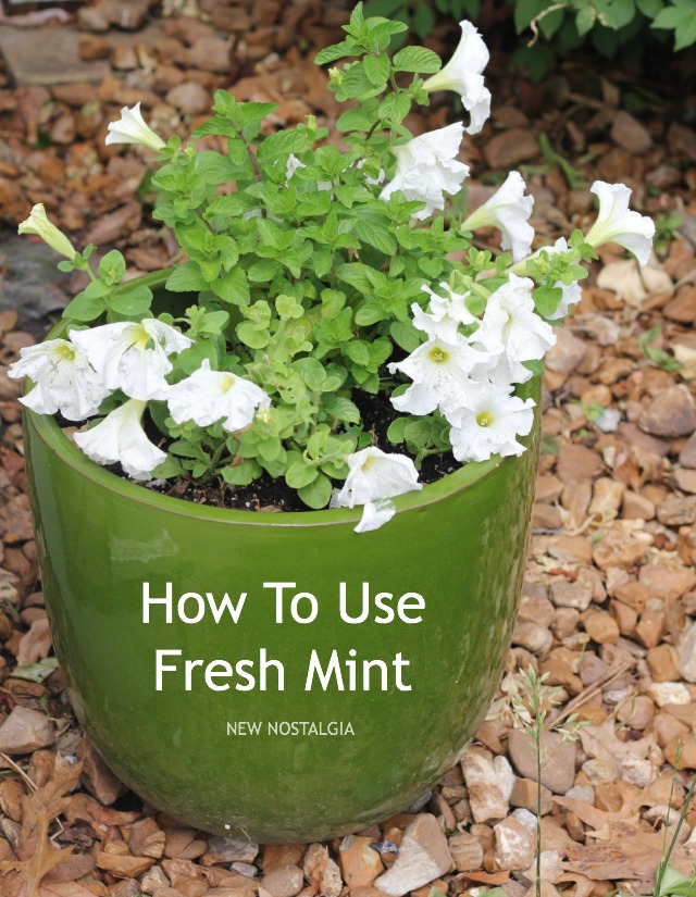 Arn’t those great suggestions? I love that Mojitos got 4 shout-outs. I love the idea of putting it on my watermelon, making a mint pesto/salad dressing, and LOVE the healthful ingredients in the Shamrock Shake. I also had to chuckle at Andria’s little ones and their breath! I have the best community here at New Nostalgia, it makes me so happy when we can all hang out on Facebook and chat together. Come join us!
