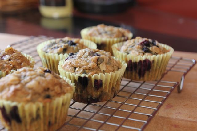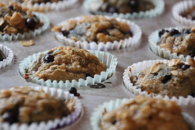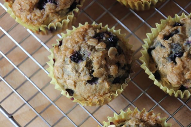 We had 2 snow days last week, and having my girls home from school with snow falling outside always puts me in the mood to bake. I scoured the web and my bread/muffins pinterest board for a healthy, hearty blueberry muffin recipe and found this one from Heavenly Homemakers.