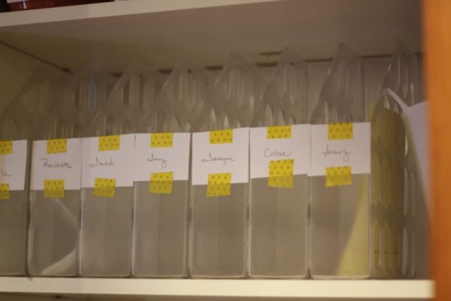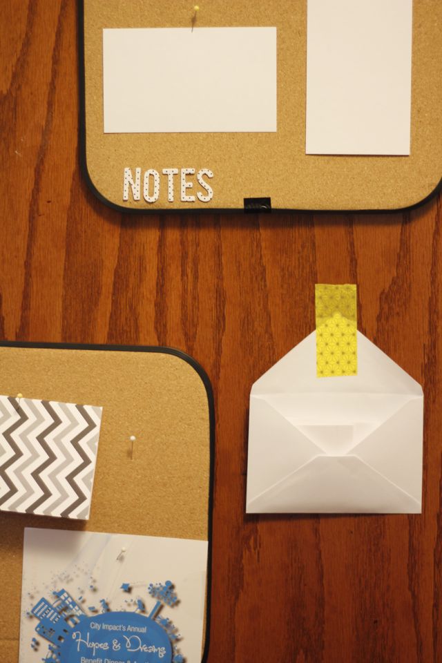 I had great fun making the labels. Like I said above, I kept it simple enough to be able to do a quick change of label if needed, just by grabbing a 3×5 card, a clip and my Sharpie pen.  I stored the 3×5 cards, cut in half, in an envelope and taped it to the inside of the closet door with washi tape.  I utilized the inside of the closet doors by hanging a few bulletin boards.  The board marked ‘Truth’ will hold a weekly scripture verse to keep front and center in our minds throughout the week.