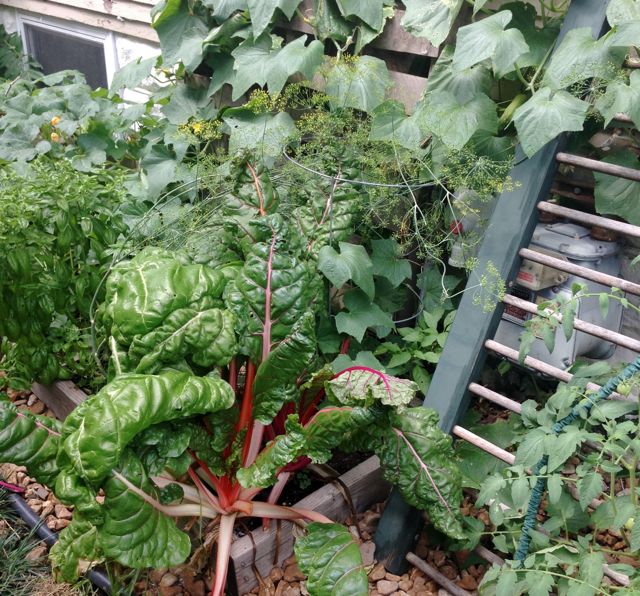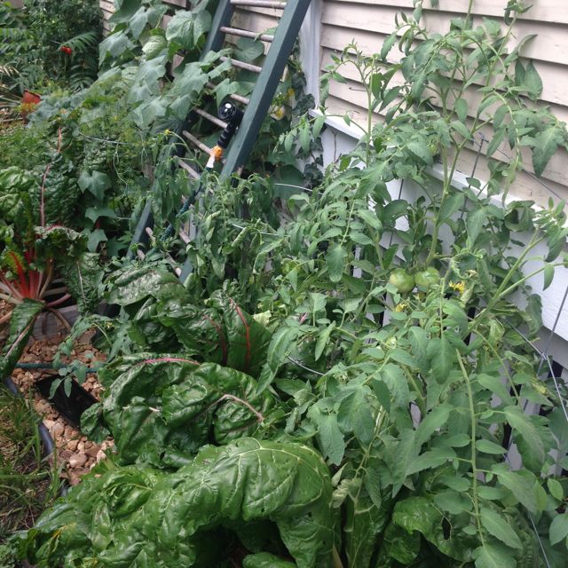 I replaced the kale with tomatoes, pepper, more swiss chard and a squash plant.  All have done beautifully except my squash plant.  May he RIP.